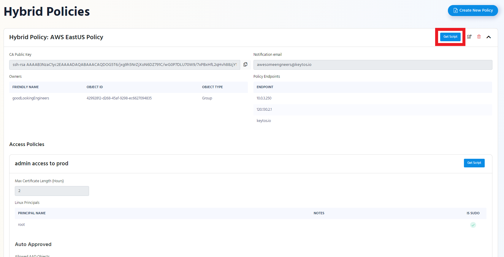 If you want to only set up the Linux principals of an access policy click the “Get Script” button of that access policy.